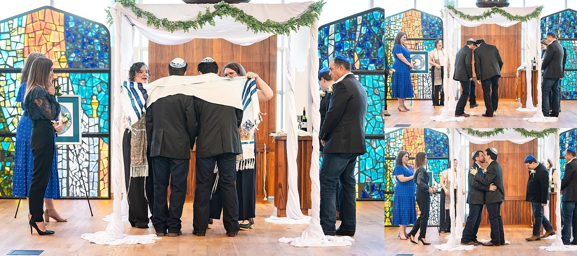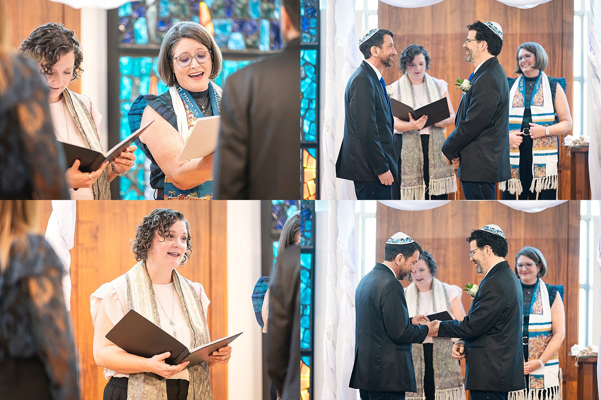 I fell in love with Josh and Adam. These two guys met on MYSPACE, and celebrated their 18th anniversary of meeting and falling in love by making it official at Congregation Beth Israel on Halloween. I asked, “Are you guys fans of Halloween??” They laughed and said, “No. It’s our 18th anniversary, and the number 18 in Judaism is the numeric symbol for LIFE.” Well color me smitten! It was an honor to be a part of their intimate wedding at CBI. They signed a beautiful ketubah. Their best friend and brother sang at the end of the wedding ceremony and brought down the house. It was awesome!