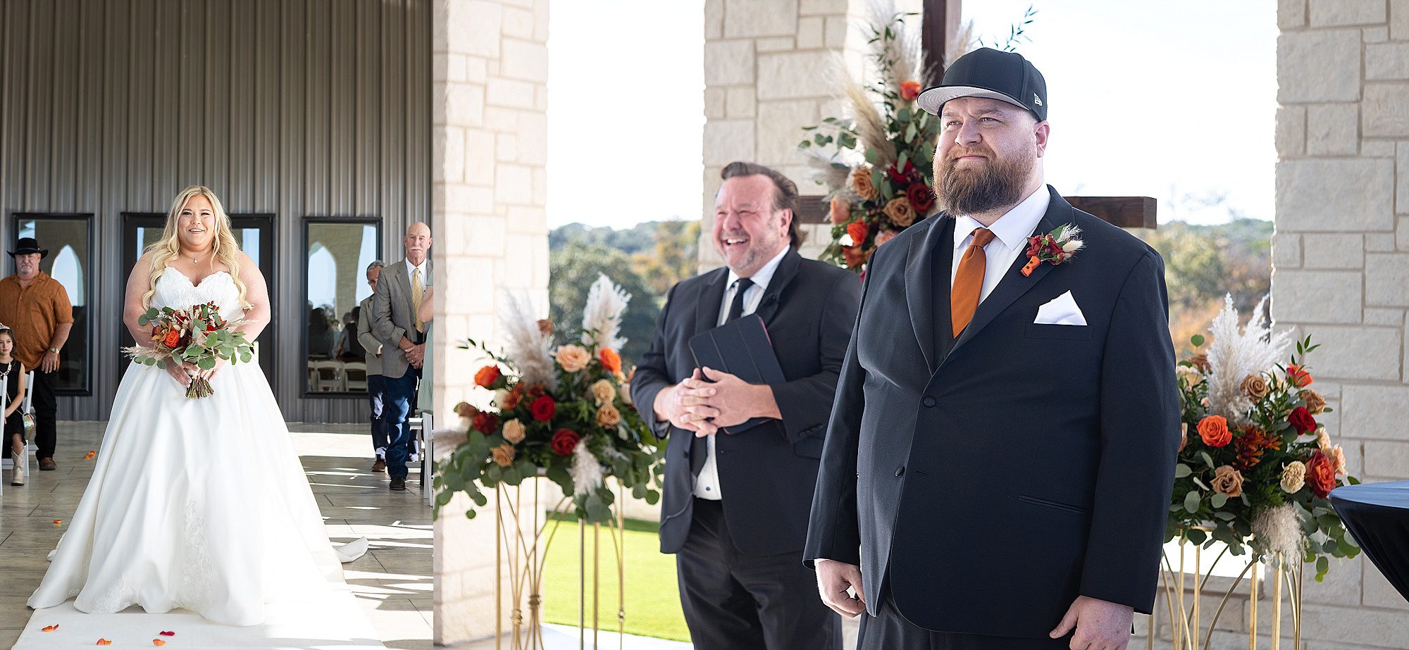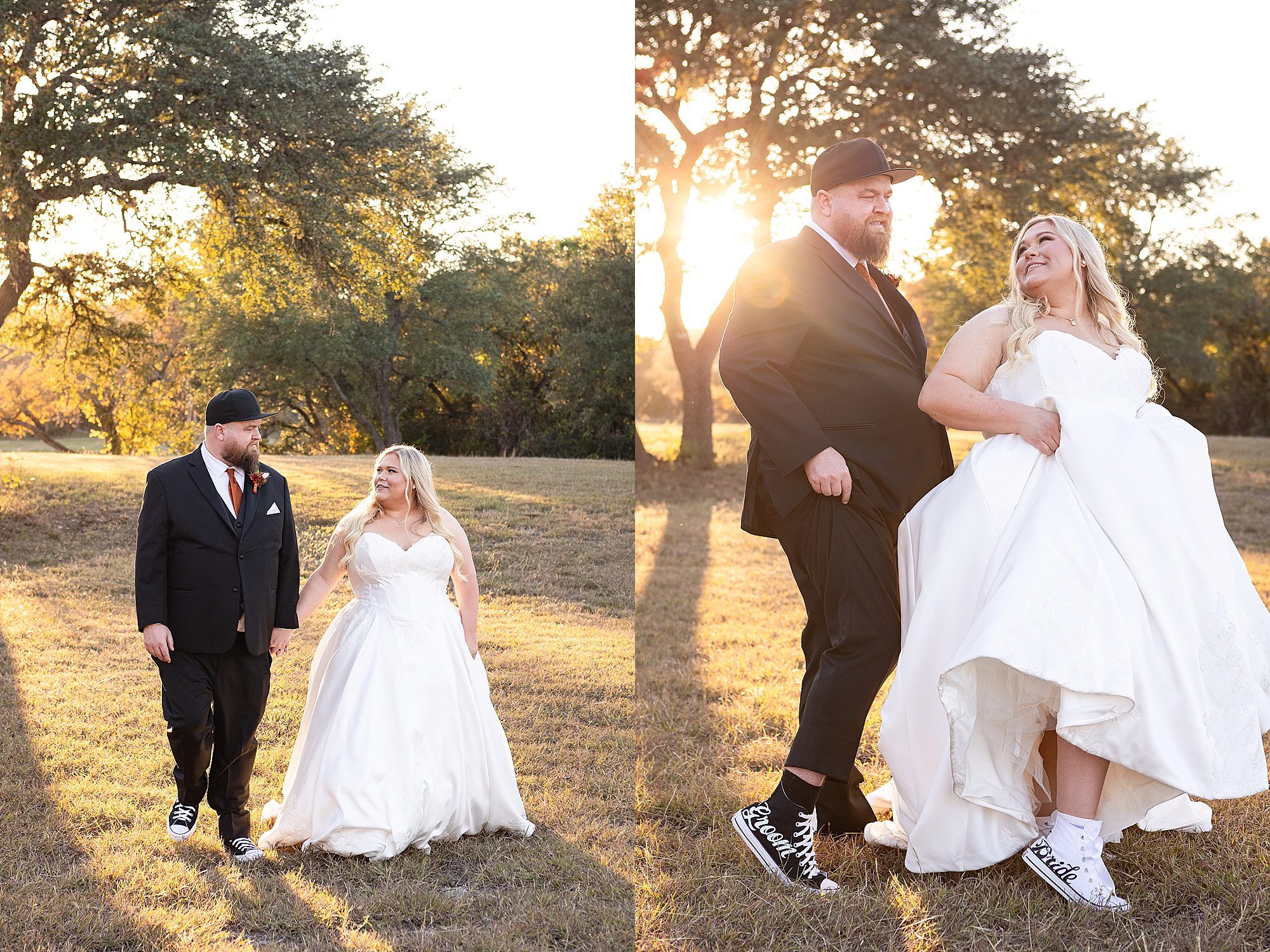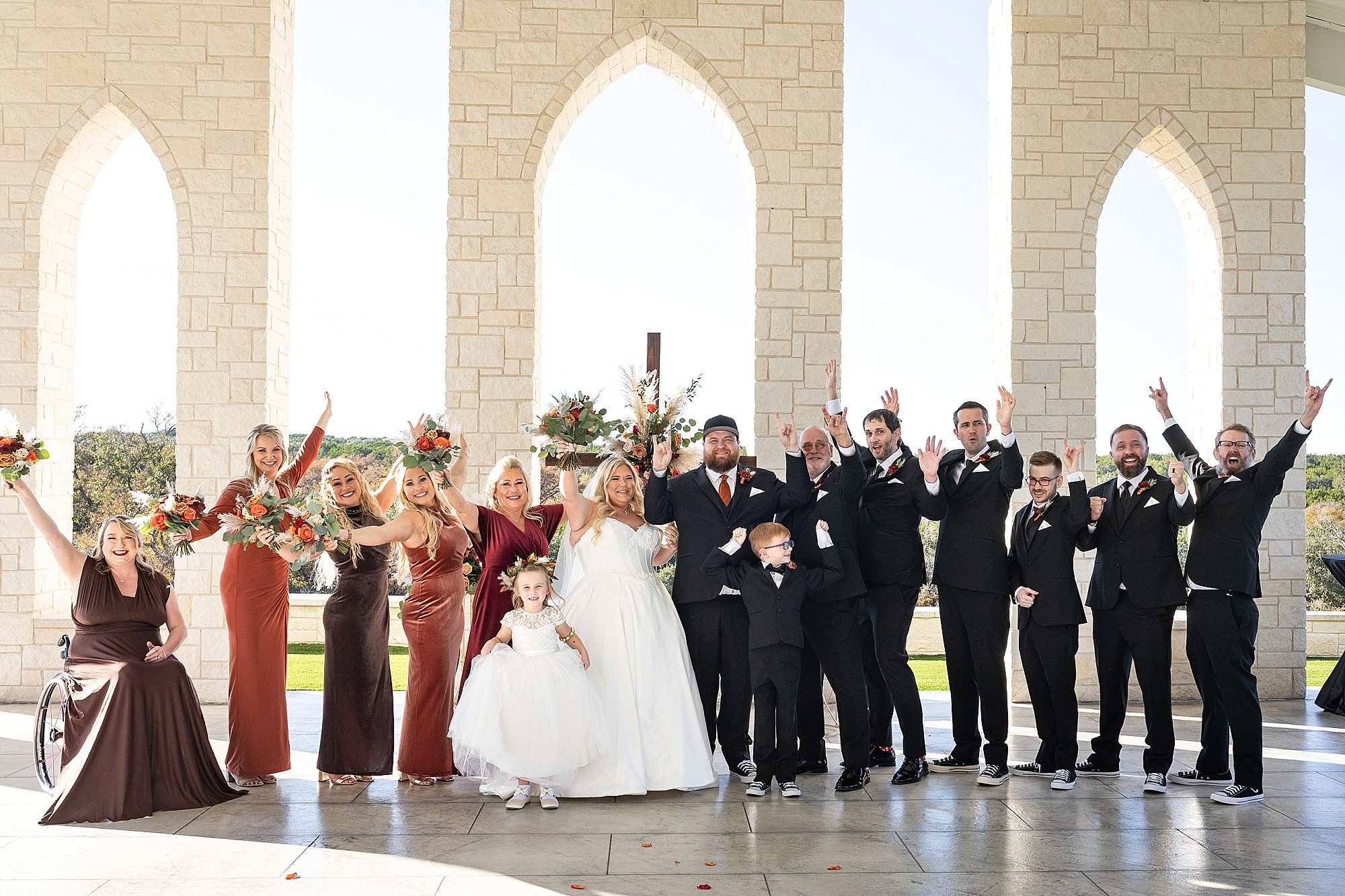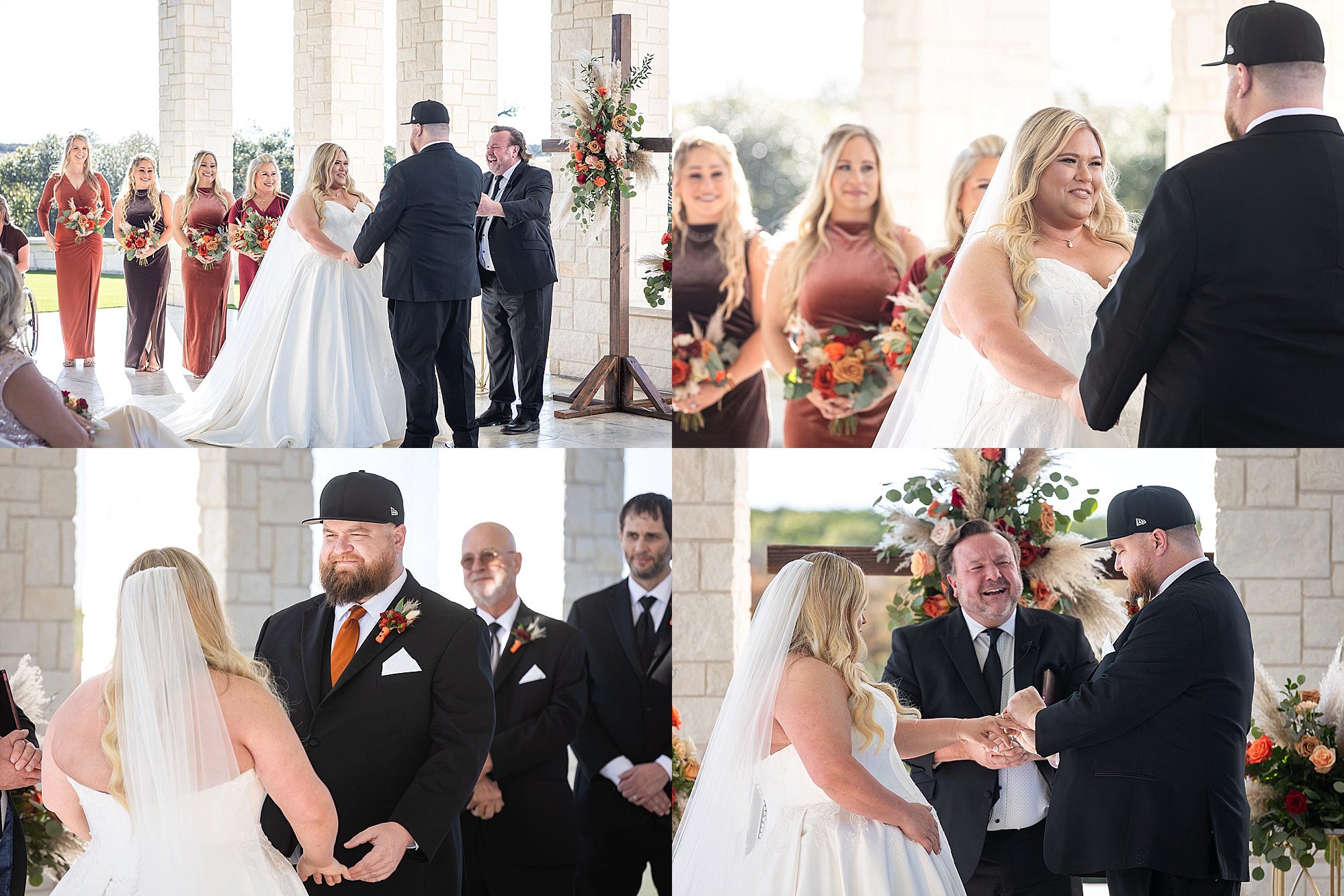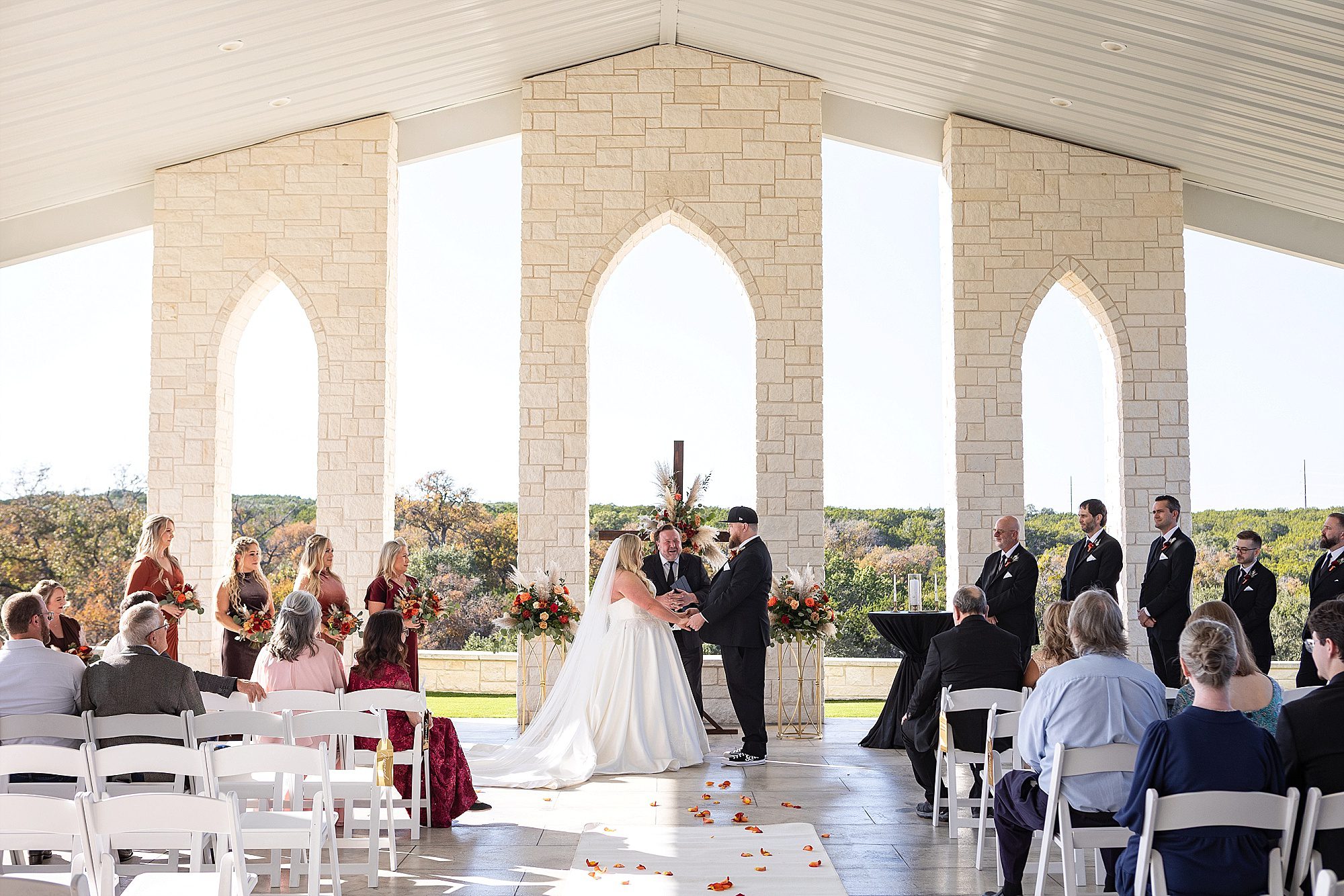 Chrissy and Harrison had the most perfect day for their hill country wedding this past fall. They chose Hill Country Bliss for their wedding venue. This jewel is tucked away right outside the tiny Texas town of Burnet. The venue has a terrific, spacious ballroom for cocktail hour area plus dinner and dancing. It features a beautiful pavilion overlooking the hill country on the back side. The owners happily drive you down the hill to the lower property at sunset for stunning portraits. It is a wonderful wedding venue!
