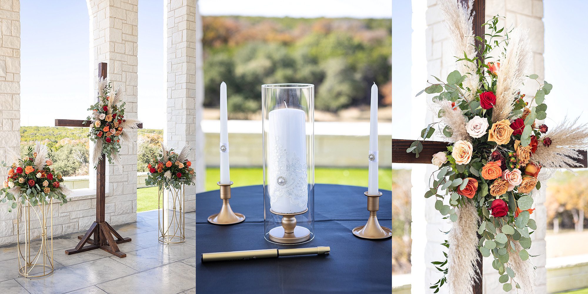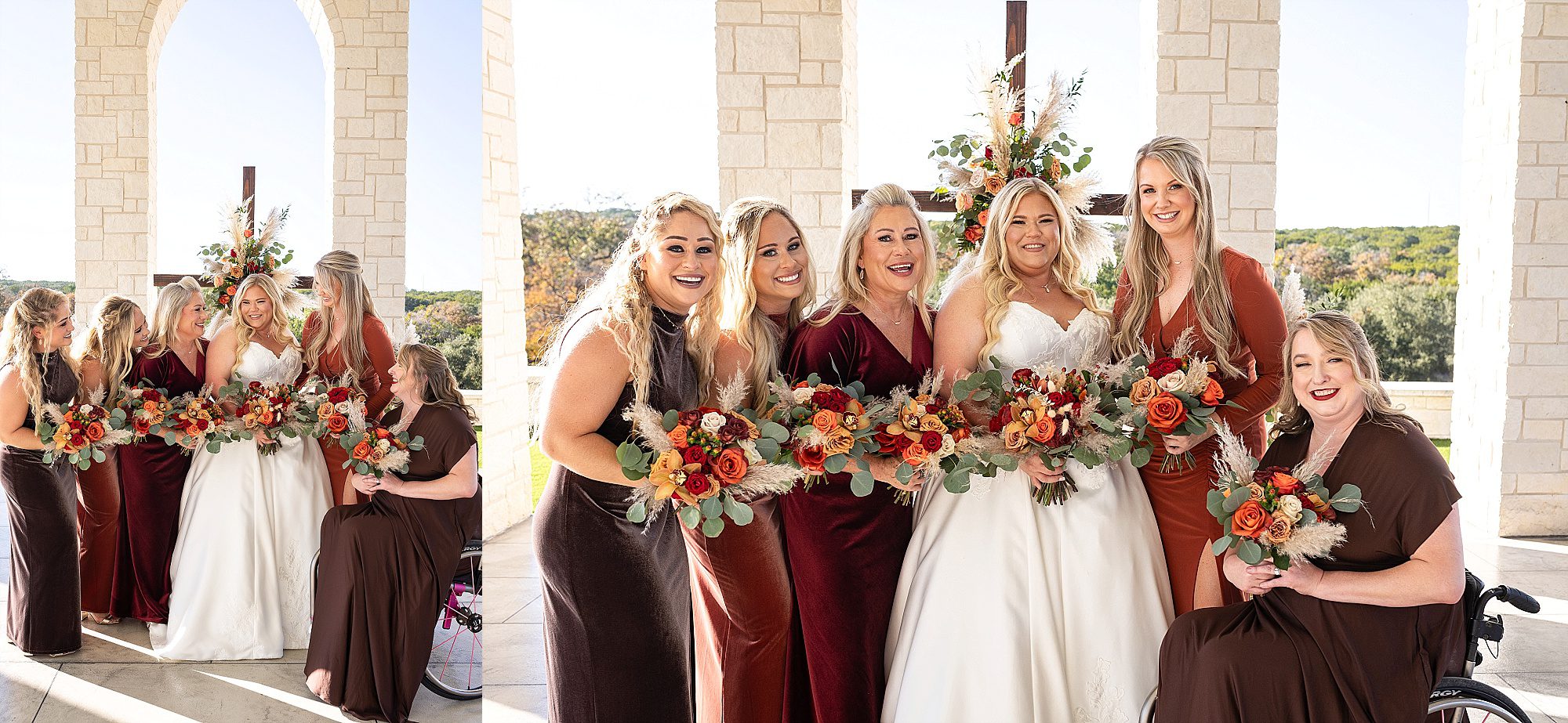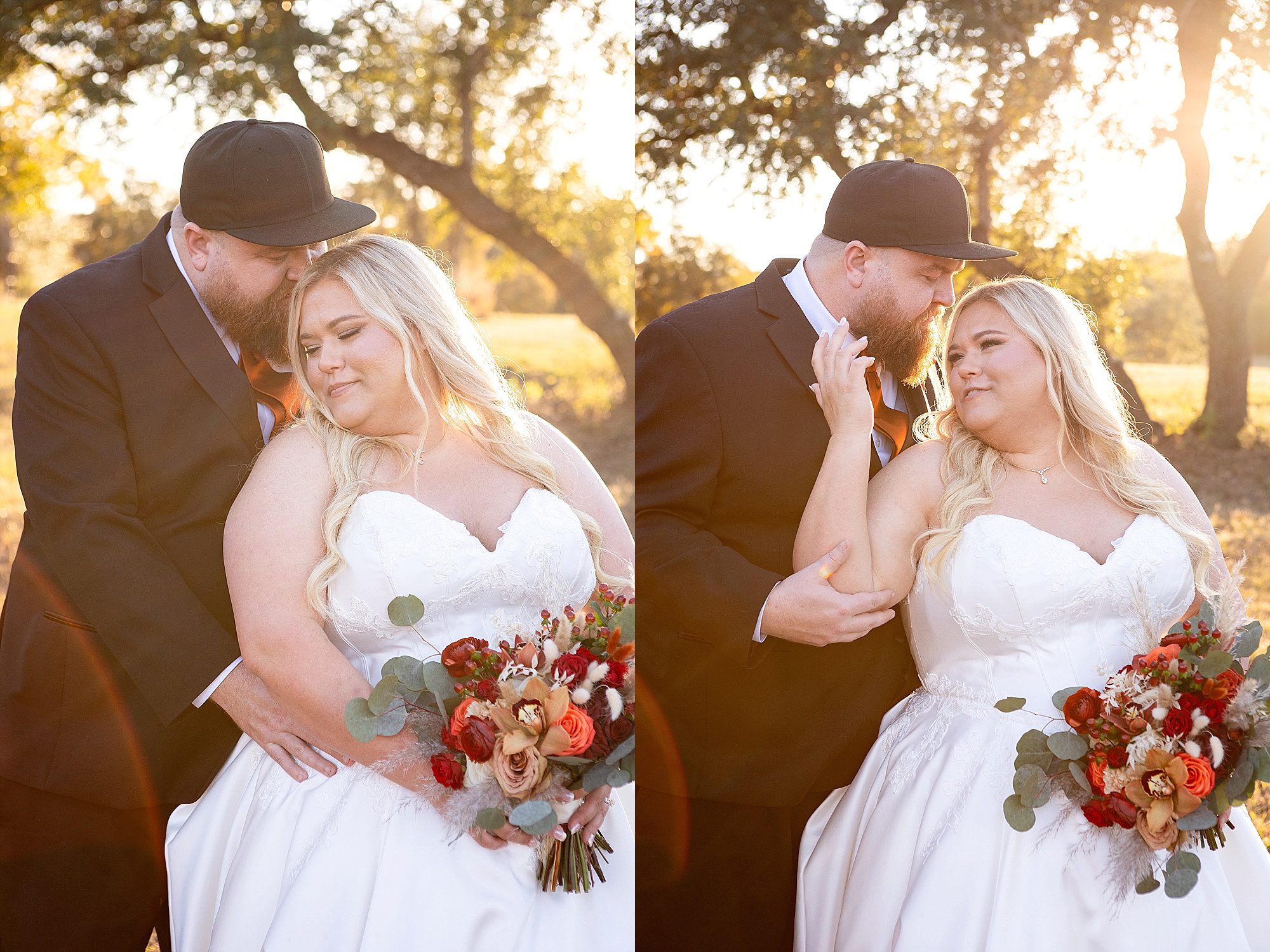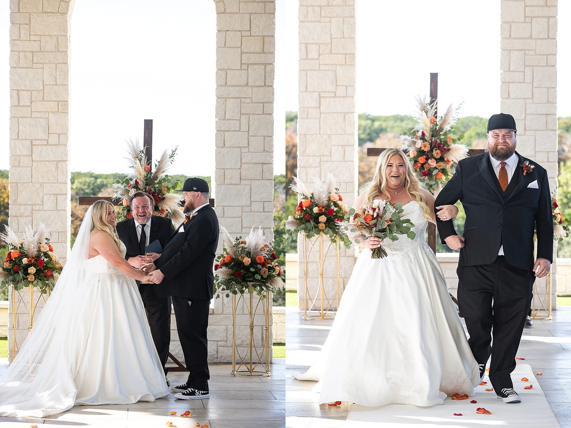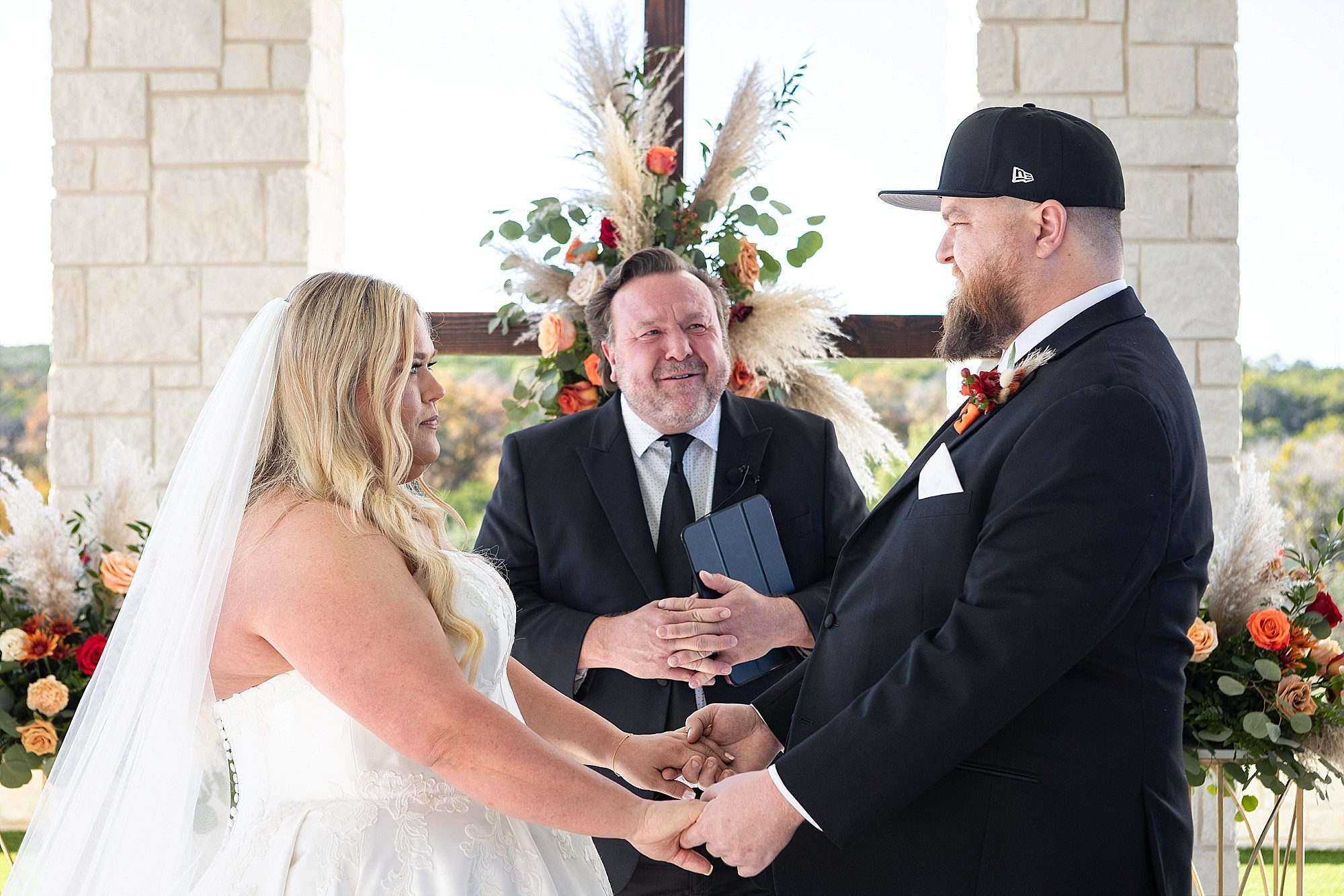Chrissy and Harrison had the most perfect day for their hill country wedding this past fall. They chose Hill Country Bliss for their wedding venue. This jewel is tucked away right outside the tiny Texas town of Burnet. The venue has a terrific, spacious ballroom for cocktail hour area plus dinner and dancing. It features a beautiful pavilion overlooking the hill country on the back side. The owners happily drive you down the hill to the lower property at sunset for stunning portraits. It is a wonderful wedding venue!
